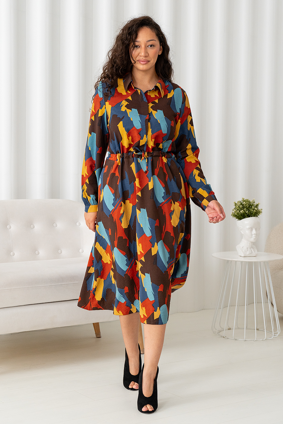 Ткань: хлопок с эффектом креш. Платье-рубашка, на кулиске. Рукав длинный на манжете. Длина изд. ок.127см.
